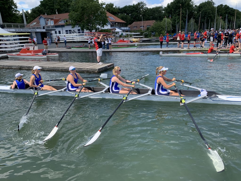 Im Renndoppelvierer mit Steuermann der Jahrgänge 2005-2007 ruderten die Jungs von der Stadtteilschule Alter Teichweg knapp vor dem Wilhelm-Gymnasium über die Ziellinie und sicherten sich somit das Ticket nach Berlin. Im Gig-Doppelvierer setzte sich das Team vom Wilhelm-Gymnasium überraschend souverän gegen zwei Vierer vom Matthias-Claudius Gymnasium durch und wird Hamburg in Berlin vertreten.