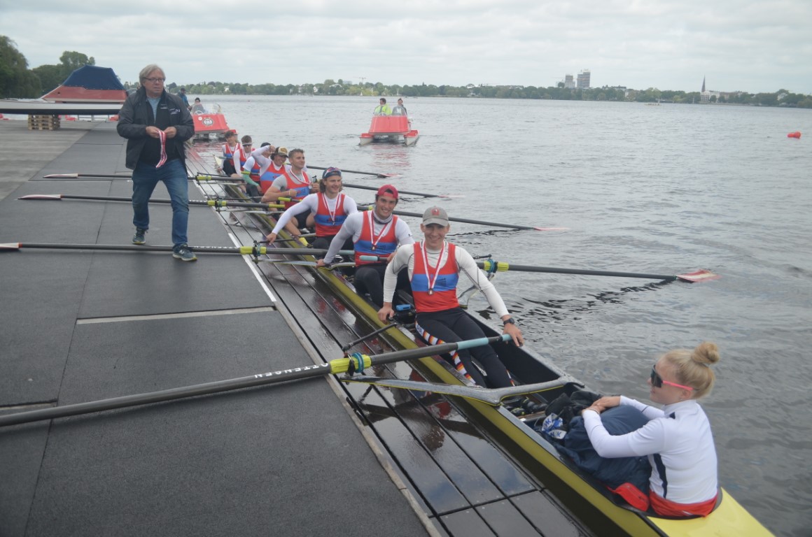 Krönender Abschluss dieses bunten Regattatages war das Achterrennen, in dem erwartungsgemäß die ältere Mannschaft der StS Alter Teichweg mit einigen Bootslängen Vorsprung ins Ziel kam.