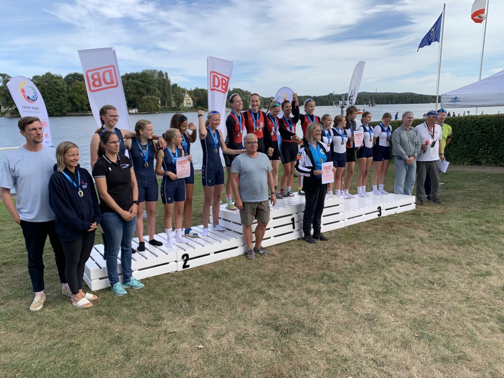 Siegerehrung im Mädchen-WKII-Gig-4x+. Es siegte die Karl-Rehbein-Schule Hanau, vor der Humboldtschule Hannover und dem Friedrich-Schiller-Gymnasium Preetz