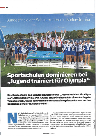 In der Dezember-Ausgabe des Verbandsmagazins Rudersport erscheint der lesenswerte Beitrag von unserem Vorsitzenden Peter Tholl über das Herbstfinale Jugend trainiert für Olympia und Paralympics im Rudern in Berlin-Grünau. Mit der Überschrift „Sportschulen dominieren bei Jugend trainiert für Olympia“ weist er auf die augenfällige Entwicklung hin, die sich seit der Veränderung des Wettkampfprogramms seit 2024 ergeben hat.