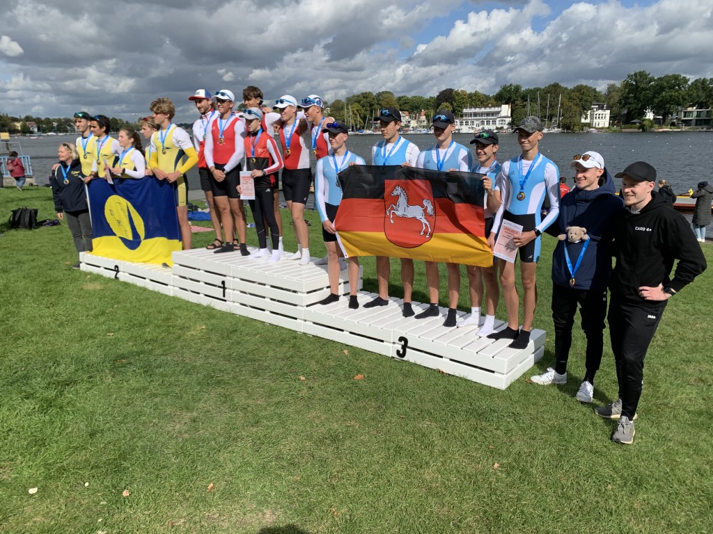 Beitragsbild: WKII-Jungen-8+: Platz 1: Besselgymnasium Minden, Platz 2: Flatow-Oberschule Berlin und Platz 3: Ratsgymnasium Osnabrück.