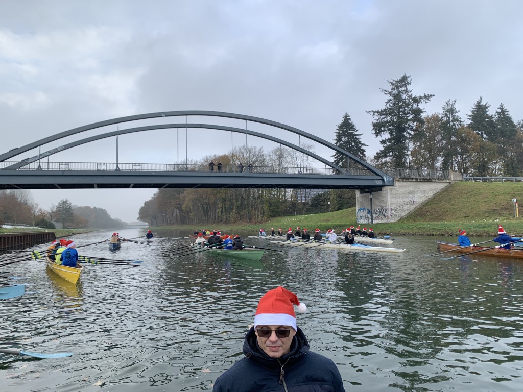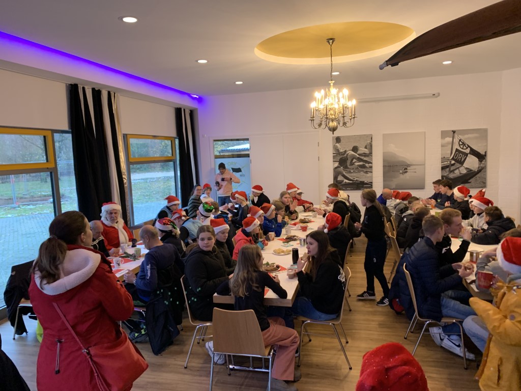 Der Nikolaus erschien gemeinsam mit Schulleiter Ulli Solbach am Ufer, bestieg das Motorboot und begab sich mitten unter die Bootsansammlung. Nach dem Abspielen der „Weihnachtsbäckerei“ begrüßte der Nikolaus mit einer teils launigen, teils nachdenklichen Rede die jungen Sportler. Er lud alle zu Kuchen sowie Kakao ins Bootshaus ein und wünschte eine gute Heimfahrt.